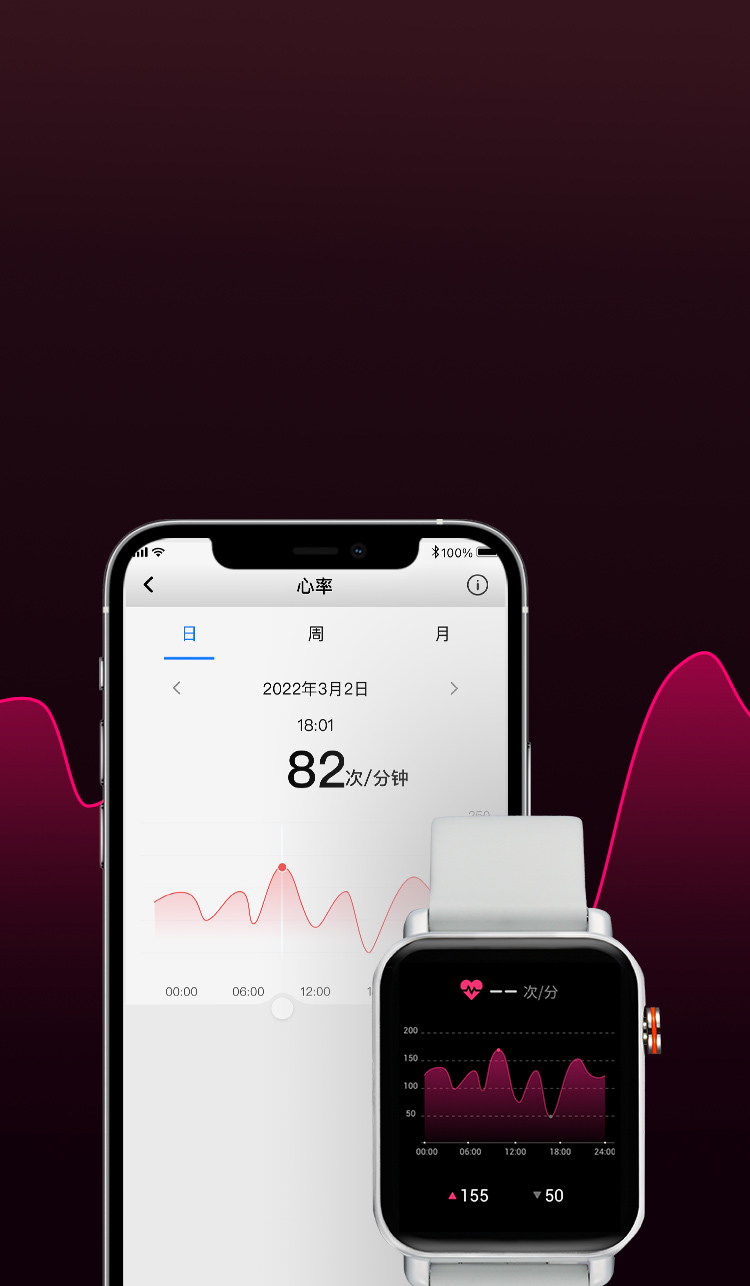 50+运动模式,更多运动选择,配合专业运动算法,精准监测并分析心率