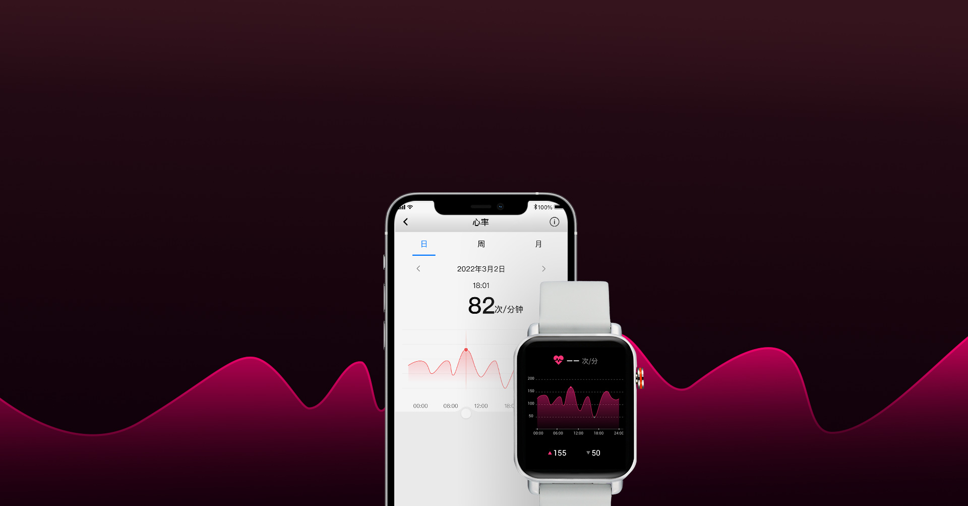 50+运动模式,更多运动选择,配合专业运动算法,精准监测并分析心率